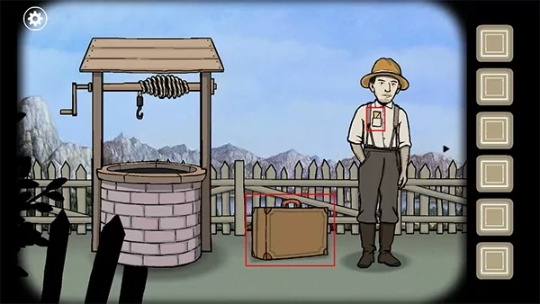 1、进入关卡,初略观察四周,场景中有水井一口,小狗一只,洒水壶一个,行李箱一枚。依照人类的好奇心我们首先点击行李箱,发现行李箱有三位密码锁。