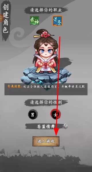 1. 首先创建角色,挑选职业与性别,随后进入游戏,开启《三国志名将传》的冒险之旅,逐步推进游戏剧情。