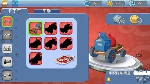 5、在卡丁车界面,玩家能够挑选并解锁心仪的卡丁车与角色。