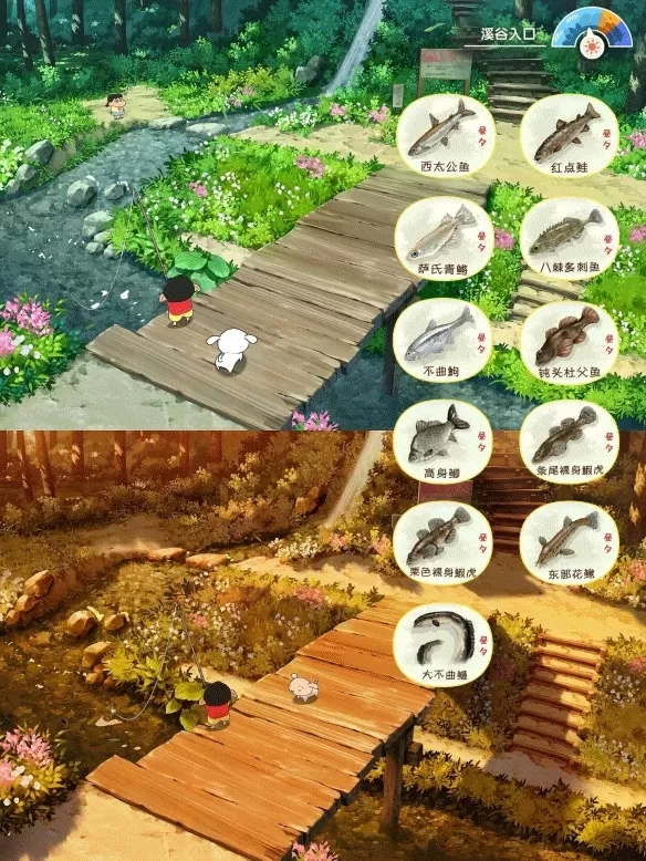 《蜡笔小新煤炭镇的小白(Shin chan:Shiro&Coal Town)》是一款从Steam移植而来的治愈系角色扮演游戏。这款游戏无论是画风还是剧情,都高度还原了蜡笔小新原作的氛围,并非只是简单的IP套皮之作,而是切实让玩家能够体验到一段仿佛“亲身参与的小新日常”。 该游戏主要依靠剧情来推进,玩家将带领小白在秋田的自然乡野与神秘的煤炭镇之间穿梭。在不同的场景中,会解锁各式各样的互动玩法,像钓鱼、抓蝴蝶、采山菜、栽培蔬菜,以及用小新式的奇怪动作与NPC互动等,每一处细节都充满了小新动画世界的原汁原味。 在玩法方面,所有互动基本围绕点击、选择和探索展开,玩家上手毫无压力。镜头与场景的切换流畅自然,玩家在短短几分钟内就能找到游戏节奏,进而逐渐沉浸在小新式的“慢生活冒险”之中。