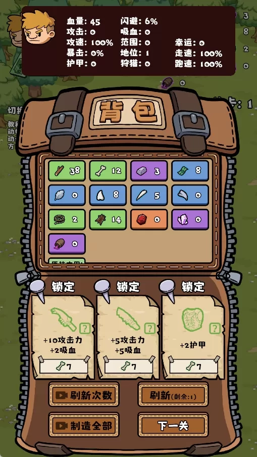 丛林抵御战是一款肉鸽式生存。游戏的核心乐趣来自随机+自定的组合,地图、装备、伙伴都随机,但玩家可以提前设定装备池,通过策略打造自己的专属流派。战斗节奏爽快,手感接近土豆兄弟,但因为加入材料收集、装备制造、宝箱收益等系统,让每局都不仅仅是“打怪”,还包含规划、成长与循环收益!
