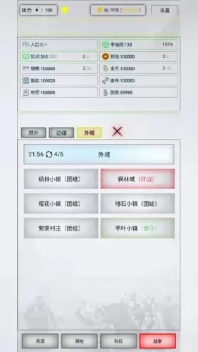 2、通过外域战争可以获得地契,开启战争需要解锁图书馆-工坊技术科技。