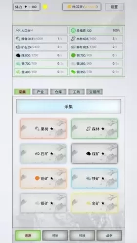5、弄到地契后就可以去城市那里扩建了,建民房可以增加人口,人口可以加快生产物资,人口需要消耗食物,冬天还要消耗棉衣。