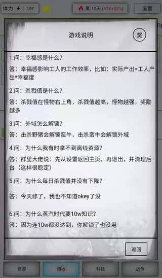 1、开局发展以攀科技为主,解锁特种兵再开始出战,前期用特种兵推域外发展人口。
