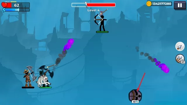 1、进入挑战之后,按住屏幕然后拖动即可蓄力瞄准,松手后即可进行射击。