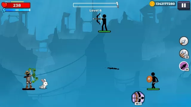弓箭手2是一款以策略为核心的休闲射击,采用简约的火柴人画风,结合物理引擎模拟弓箭飞行轨迹,为玩家带来独特的射击体验。游戏中,玩家需通过调整射击角度和力度,击败不同位置的敌人,同时应对地形、障碍物和动态天气的挑战。核心玩法融合策略与操作,强调精准计算与实时反应,适合喜欢休闲竞技与策略挑战的玩家,每个关卡包含独特地形和障碍物,需灵活调整战术,BOSS拥有大范围攻击技能和护盾机制,需抓住硬直间隙输出,避免正面硬刚,支持全球玩家实时匹配,通过段位系统匹配实力相近的对手,还可添加好友,查看在线状态并直接邀请对战,或观战学习技巧。