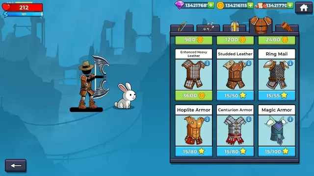 2、例如可以购买各种弓箭和头盔、盔甲。