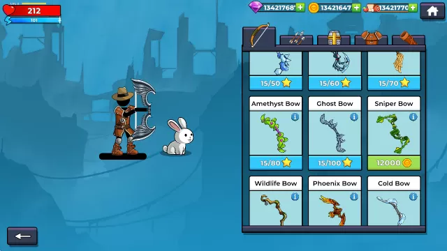 弓箭:对新手十分友好的武器,具备出色的输出能力,升级之后攻击力会有明显提升,适合进行远程精准打击。