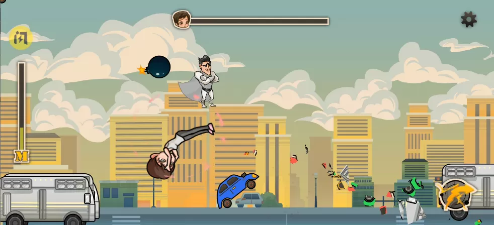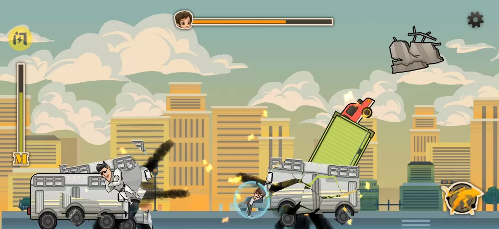 4、持续坚持一段时间后便会迎来boss战,通过滑动屏幕能够操控角色移动,借此躲避高楼。攻击boss可使其血量降低,当boss血量降至零时,即可顺利通关。