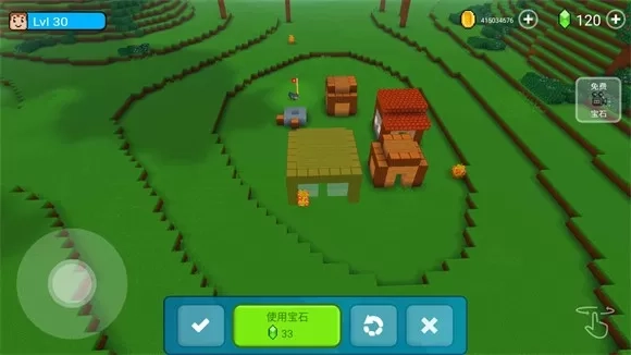 3、点击“立即建造”后,会进入放置界面。在此界面,你既能够逐个放置方块,也可以使用宝石快速完成建造。