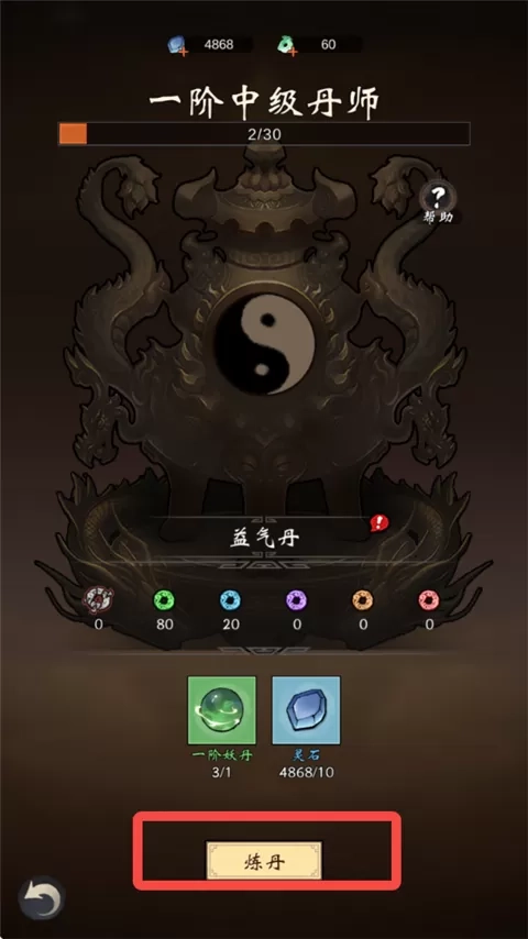 4、嗑药:通过炼丹能够获取炼丹心得,这些心得可用于提升丹师等级。所炼制丹药的等阶越高、品质越佳,得到的炼丹心得就越多。提升丹师等级,能够提高高品质丹药出现的基础概率百分比。