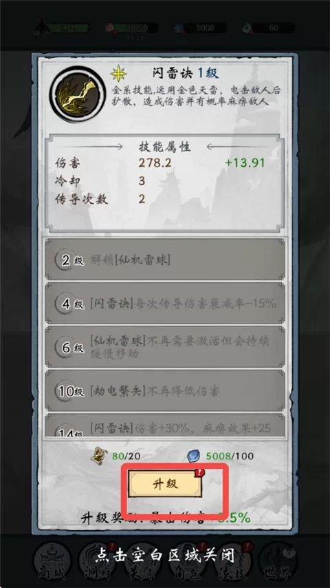 3、踏入法技界面,便能对技能等级进行提升,进而增强技能伤害、扩大技能范围或提升冷却效率,让战斗表现更为出众。