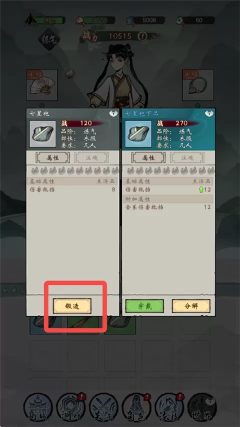 1、打装备:锻造装备可提升其品阶,提高其基础属性。