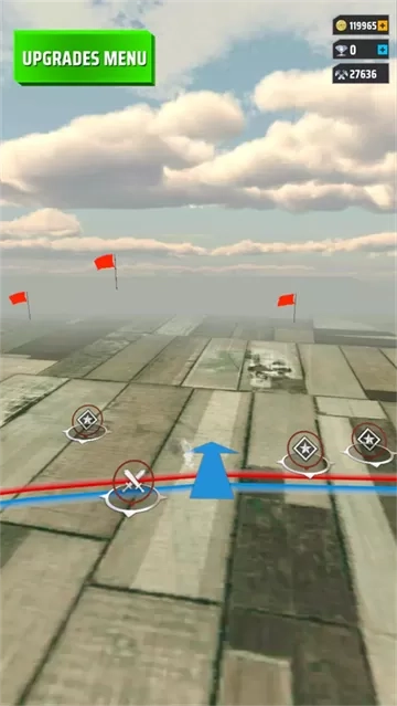 2、游戏中会显示蓝红战线以及远方的旗帜,玩家需要从战线目标出发,寻找并摧毁敌方目标。