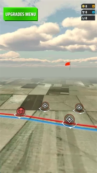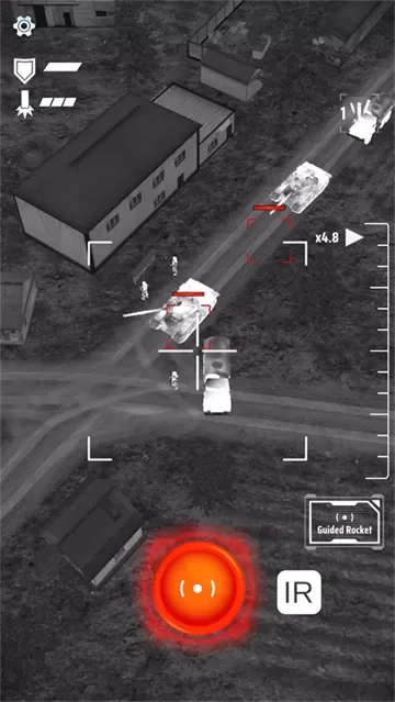 4、点击屏幕下方的红色投弹按钮来投放炸弹。注意,步兵防空导弹有跟踪效果,在轰炸过程中,最后时刻尽量避免悬停,快速移动以减少被防空导弹锁定的风险。