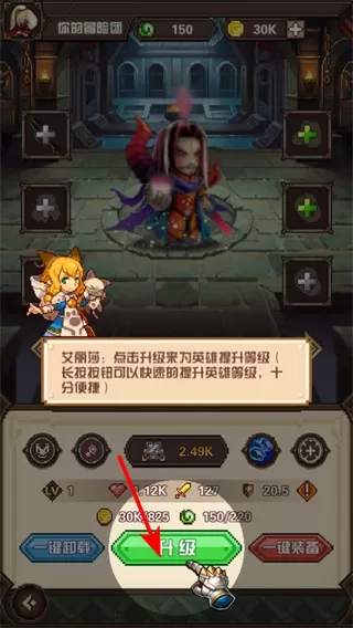 4、升级界面点击升级可提升英雄等级,升级时需消耗资源,等级提升英雄攻击、防御等属性增强,助力后续战斗。