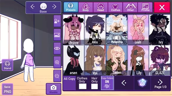 2、进入游戏后,点击左侧的presets,即可挑选已制作完成的角色。