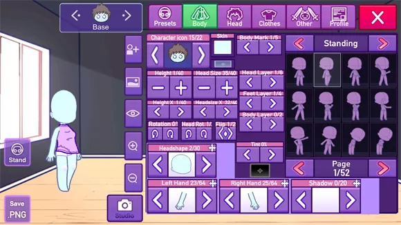 3、点击body可以自己定制角色的体型。