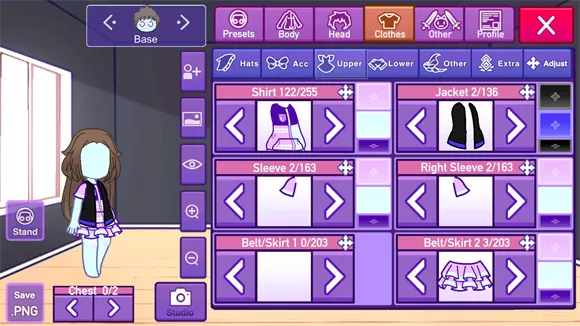 5、点击clothes能更换角色的服装和颜色。