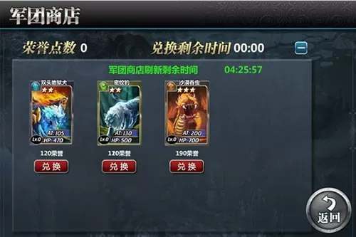 当军团等级提升至特定程度时,军团商店将会开启。在军团商店里,每购买一张卡牌都要耗费荣誉点。而且,卡牌的星级越高或者等级越高,所需消耗的荣誉点也就越多。