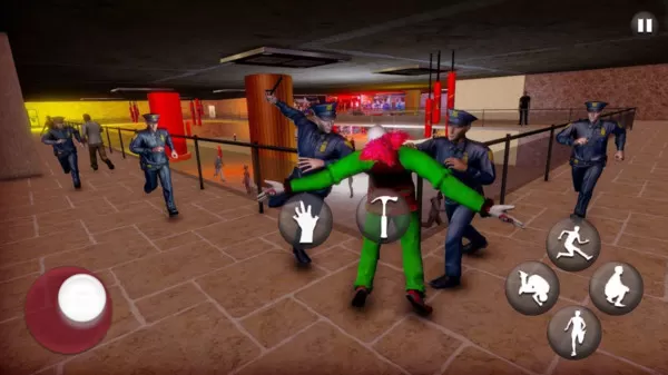 5. 你是一个在城市购物中心扮成小丑的小丑,因为小丑抢劫,保安人员正试图抓住你。