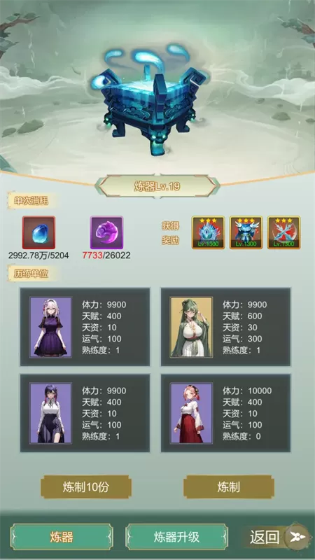 1. 对宗门资源进行经营管理,对灵田、灵矿以及修炼塔加以升级,按固定时间收取灵药、矿石等产出成果。借助这些资源来开启炼器与炼丹功能,为宗门的发展提供坚实的物资保障。