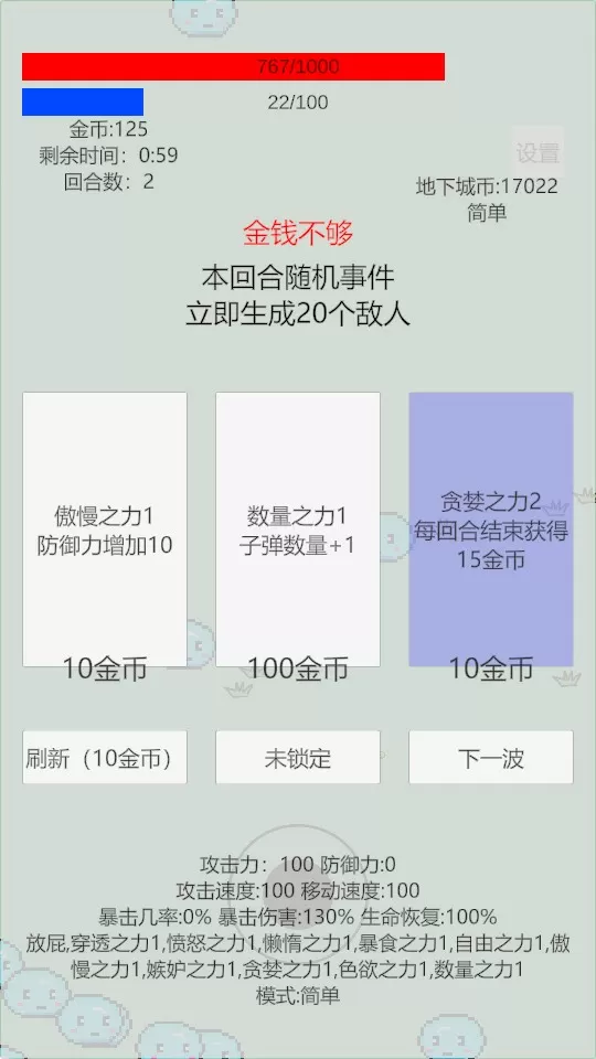 4、回合结束可以升级武器装备,也可以学习技能,但也会触发随机事件。