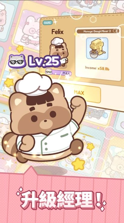 2、逐步解锁新的烤箱和食谱,提升工厂等级,吸引更多顾客。