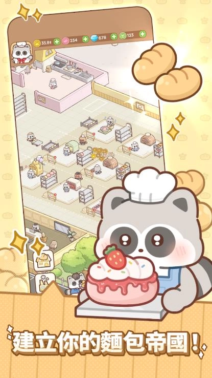 1、在游戏里,玩家将化身面包工厂的老板,率领一众浣熊员工去追寻“从一家小店发展成商业帝国”的经营理想。