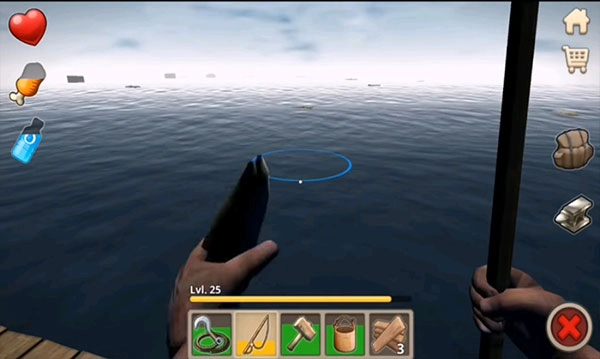 5、鲨鱼会啃咬玩家的木筏,要是木筏没被彻底咬坏,玩家就能用木板把它修好。