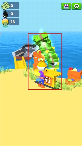 2、将收集的矿石交付至岸边的加工箱,兑换为金币等经营资源。