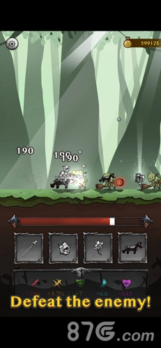3、控制骑士左右移动,冲向【绿色怪物】战斗,击败敌人可收集金币,提升战斗能力。