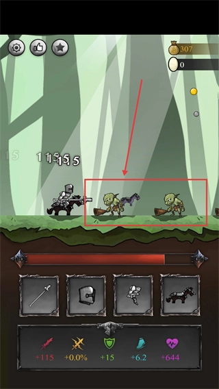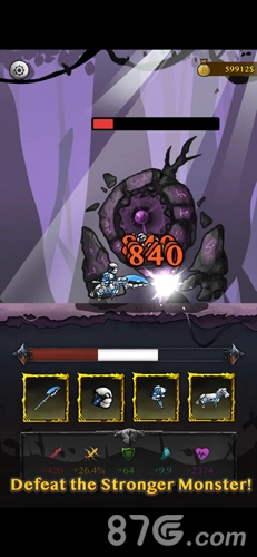 1、滑动屏幕左右控制骑士移动方向,找准时机冲向怪物发起攻击,注意规避伤害维持血量。