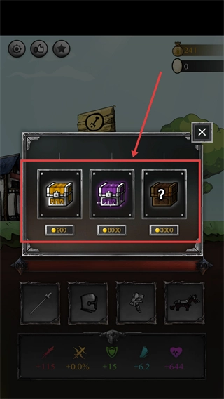 2、积累足够金币后,可选择【黄色宝箱】-【紫色宝箱】-【问号宝箱】开启,获取强力装备与奖励。