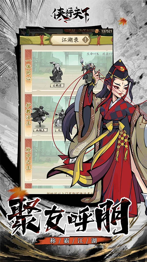 这是一款武侠题材的角色扮演游戏,丰富有趣的玩法设计能让玩家沉浸其中,收获满满的乐趣与欢笑。