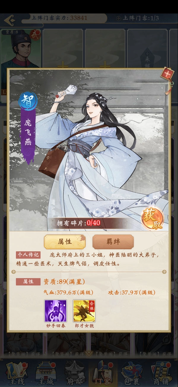 门客上阵的技巧:大堂里的政务与主线任务,是提高门客上阵数量的核心要点。