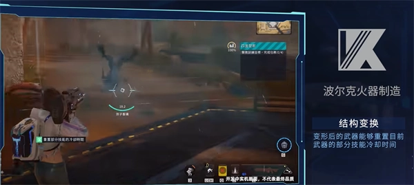 波尔克火器制造将枪体实时打印技术融入感应动力步枪的设计中,使得该武器具备变形功能,并且在武器完成变形后,可重置使用者当前手持武器部分技能的冷却时间。