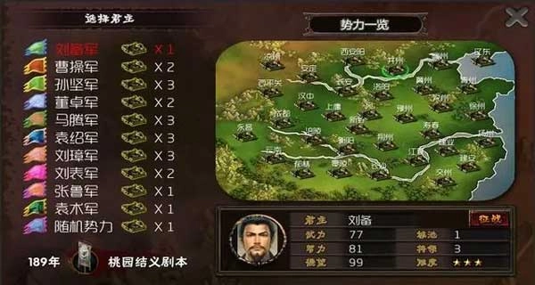 玩第一关“桃园结义”时(实不相瞒,我至今还没通关),建议选孙坚势力。最大的好处是人才济济,像周瑜、太史慈(堪称神将,武力和智力能持续成长)、大乔、小乔、孙权这些强力武将都会自动来投;而且在孙坚势力的城池周边,还能搜到不少高武或高智的武将。难度方面推荐选“士兵”档,不然可能会像我一样,一个存档就耗上二十多个小时……