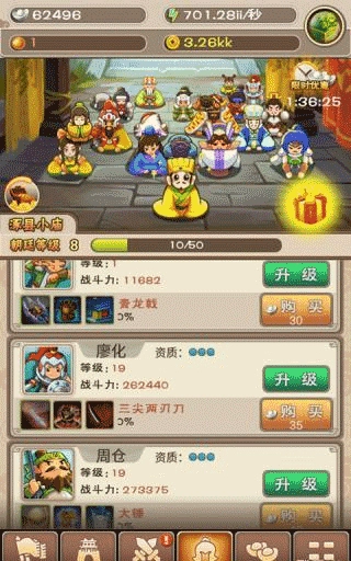 游戏内设有武将相关的功能模块,玩家可在对应界面操作提升武将的等级。首先,相较于普通士兵单位,武将在攻击能力上具备显著优势,且战斗过程中敌方杂兵通常不会优先攻击武将,因此提升武将等级能快速增强队伍的输出效率。其次,新解锁的武将往往拥有较高的初始等级,这就需要玩家尽快完成单个州郡的占领任务。此外,游戏中还设计了专属的武将技能机制,每位武将都有独特的技能效果,但目前这些技能只能通过付费方式获取。