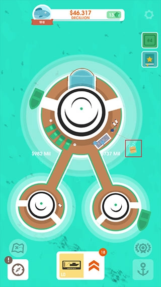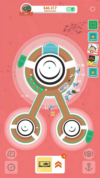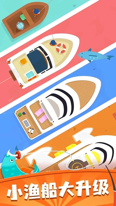 靠着捕鱼逐渐积累财富,一步步把小渔船升级改造,最终拥有了一艘超级豪华的大游艇。