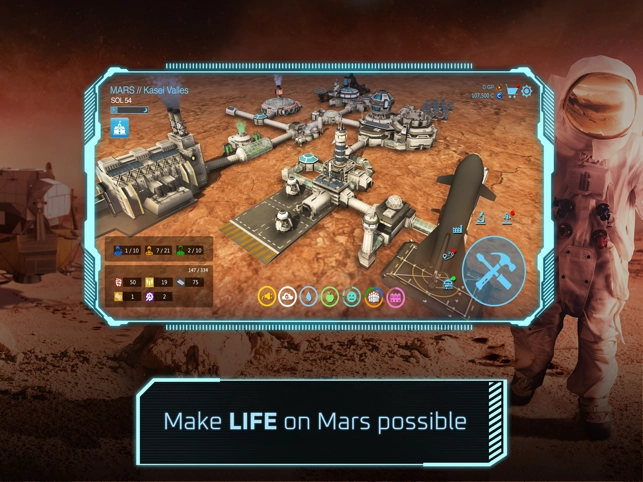 随着城市不断发展,你得在资源生产和社区成长的需求之间找到平衡点。你需要提前做好规划,设法为居民提供那些在地球上被视作理所当然的东西。要密切关注氧气、水、粮食这类城市资源的状况,保证市民身体健康,让城市能够持续繁荣下去。