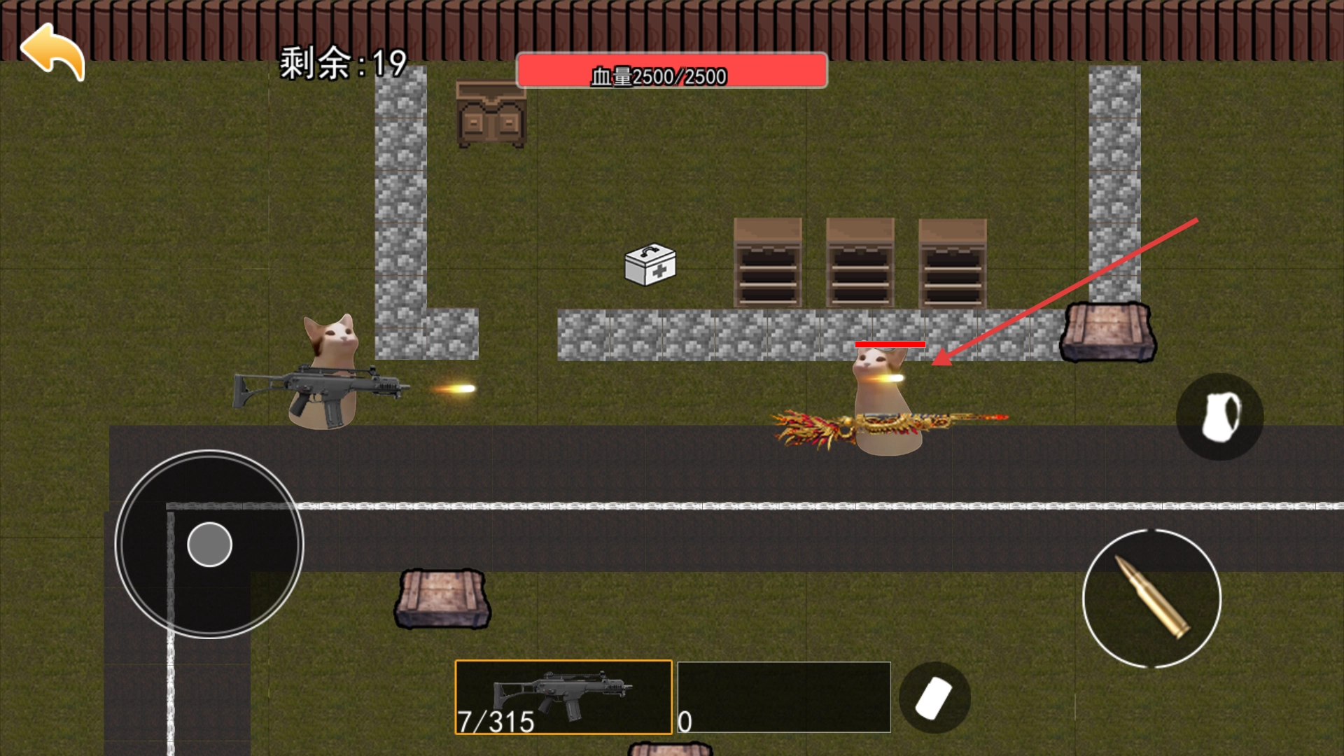 3、战斗过程中留意【血量2500/2500】的状态,一旦血量下降要及时拾取场景中的【急救箱】补充,同时优先集火击败敌方目标。