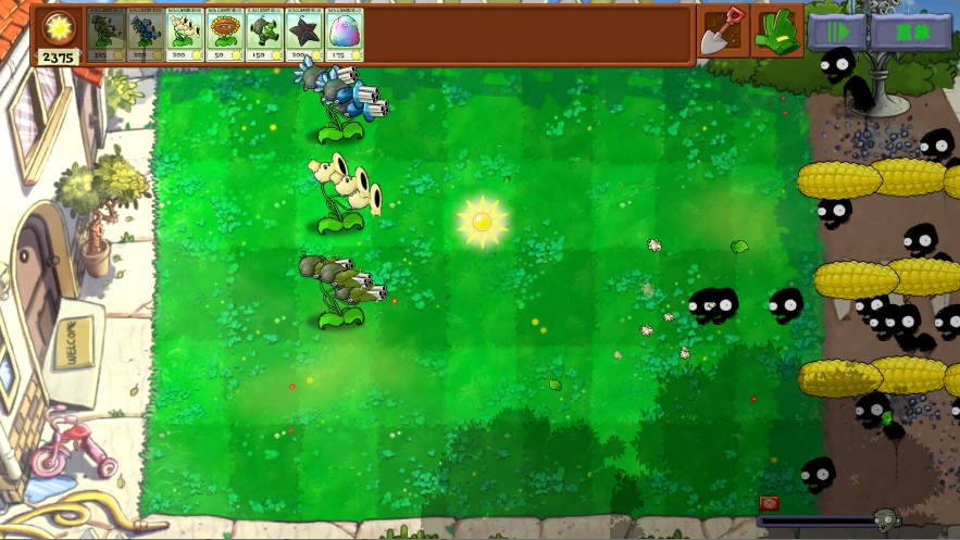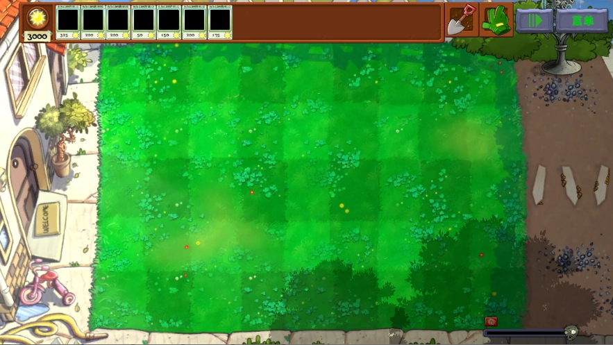 本模式开局自带两千多阳光选择植物后直接种下