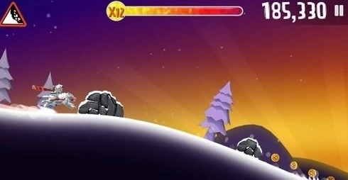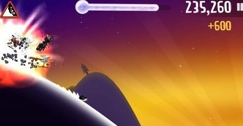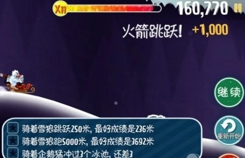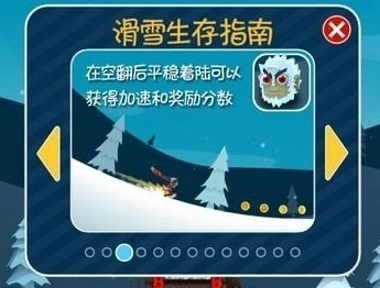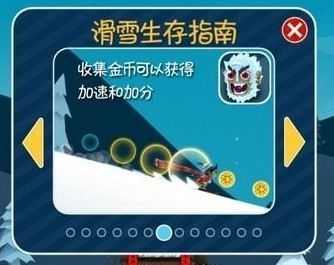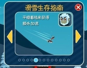 接着,屏幕上方会显示当前玩家的奖励状态,玩家能通过滑行时收集金币、完成高难度动作等方式获取奖励状态,以此激活游戏里的高级工具(比如火箭船),还能和企鹅、雪怪人一起乘着火箭船飞向远方。