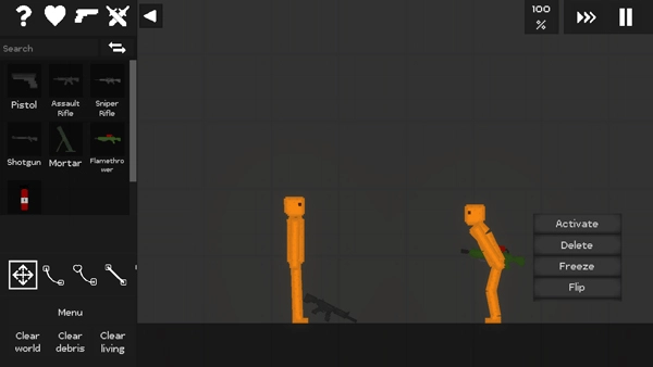 3、进入游戏如图,玩家可以自由添加物品、人物、武器等;