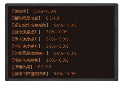 还有爆炸伤害减免、防弹,能帮你抵挡更多的伤害