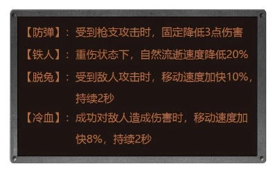 优先推荐防弹,其次考虑冷血。要是你的护甲数值足够高,再搭配防弹带来的固定3点减伤效果,所承受的伤害就会变得很低;而冷血的优势在于,攻击敌人时既能造成伤害,还能提升自身移动速度,这样追击敌人会更轻松!