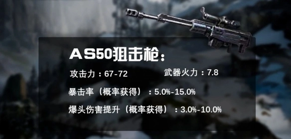 要是你是个能百步穿杨的狙击手,那AS50狙击枪绝对得列入考虑清单,选它能提升暴击率和爆头伤害,千里之外就能取敌军首级,另外还得提两款成长性武器。