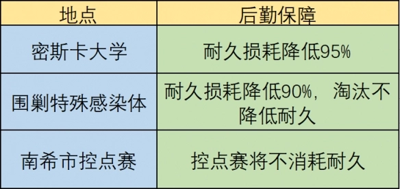 为了减轻幸存者的训练负担,商会提供了多种后勤保障,这些保障措施能够切实减缓武器耐久度的消耗速度。