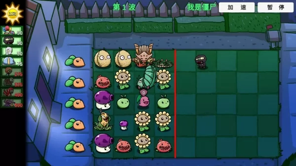 4、用阳光兑换僵尸放置在红线外(成为僵尸获取阳光的方式是将太阳花吃掉哦);